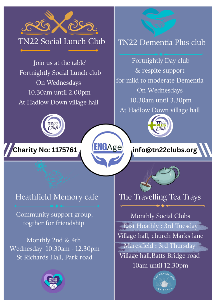 Whether it`s through our friendly social lunch club, dedicated TN22 plus dementia day club, the Travelling Tea Trays or Memory moment cafes. Our team are here for you.