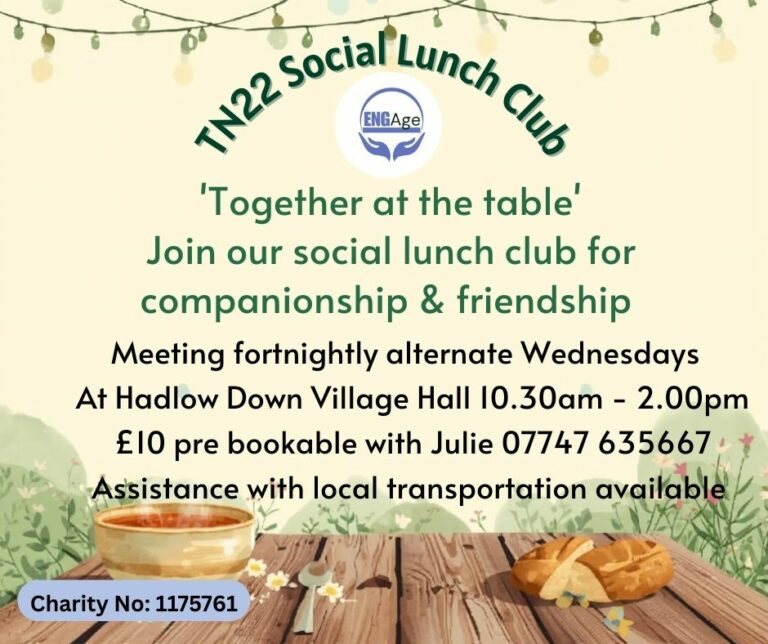 At a small extra charge we can offer transportation to our lunch club within a 5 mile radius of Hadlow Down